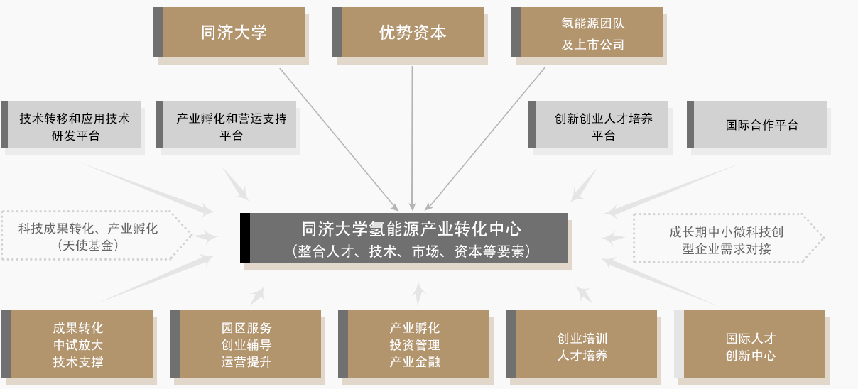 同濟(jì)大學(xué)氫能源產(chǎn)業(yè)轉(zhuǎn)化中心:由同濟(jì)大學(xué),優(yōu)勢資本,氫能源團(tuán)隊及上市公司聯(lián)合共建。中心依托優(yōu)勢資本全球化的氫能資源平臺,結(jié)合同濟(jì)大學(xué)國內(nèi)外一流的科技儲備,打造成為國際領(lǐng)先的氫能動力系統(tǒng)核心技術(shù)成果轉(zhuǎn)化平臺,為產(chǎn)業(yè)不斷注入新的科技力量。