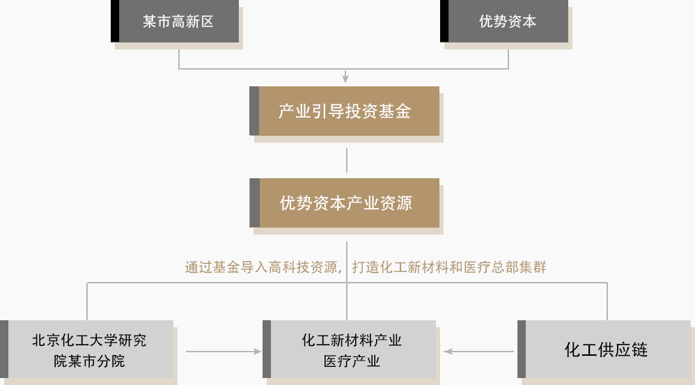 優(yōu)勢資本與安慶高新區(qū)合作設(shè)立產(chǎn)業(yè)基金,基金規(guī)模10億?;鸾Y(jié)合該地區(qū)化工新材料和醫(yī)療產(chǎn)業(yè)基礎(chǔ),利用優(yōu)勢資本資源為安慶篩選優(yōu)秀的具有核心價值的成長階段企業(yè),并以資本引導(dǎo)企業(yè)總部企業(yè)落地某地,助力打造某地化工和醫(yī)療醫(yī)藥產(chǎn)業(yè)經(jīng)濟(jì)群。